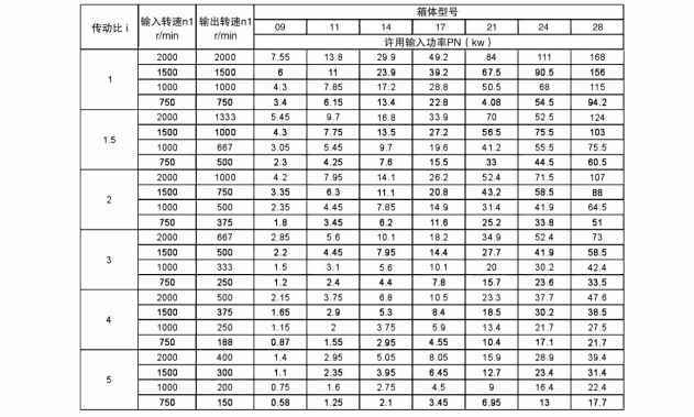 传动比、输入输出转速及输入功率